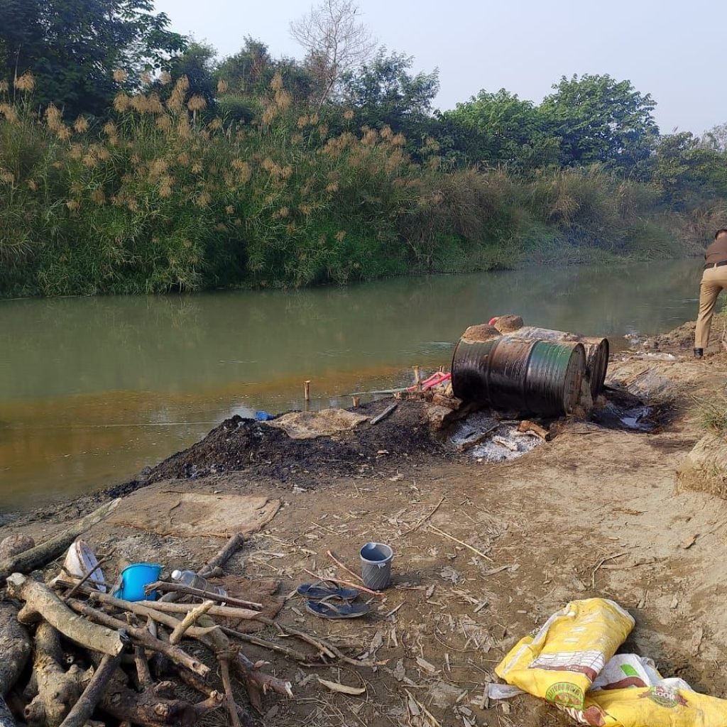 वरिष्ठ पुलिस अधीक्षक( उधम सिंह नगर ) द्वारा जनपद मे नशे के अबैध मादक पदार्थो की बरामदगी व रोकथाम के लिए चलाये जा रहे अभियान के तहत थानाअध्यक्ष अशोक कुमार के निर्देश मे थाना क्षेत्र की पुलिस टीम द्वारा आज केलाखेड़ा व गदरपुर के बॉडर पर कामरेड का डेरा व मसीत बॉडर की सीमा के जंगलों मे एवं बोर नदी के आस पास एक शराब की भट्टी व दो टीन के ड्रम भट्टी पर चढ़े हुए पाए गये पुलिस द्वारा उन सभी शराव बनाने की समाग्री ब लहन को नष्ट कर दिया गया। इस लहन की मात्र लगभग दस हज़ार लीटर बताई जा रही हैं इस कार्यवाही मे सकेनीय पुलिस एवं केलाखेड़ा पुलिस ने सयुंक्त रूप से कार्यवाही की।